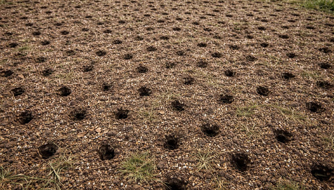 Hancock Environmental provides aerating services to improve soil health, promote strong root growth, and enhance the overall quality of vegetation. Aeration relieves soil compaction, increases oxygen and nutrient flow to the roots, and supports better water infiltration, helping plants thrive.